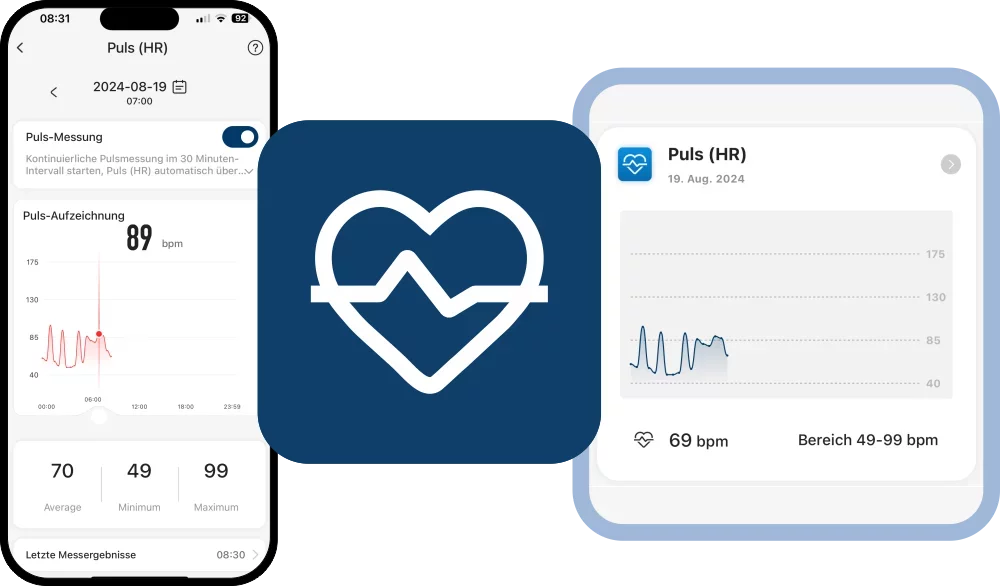 Dein Finger bietet durch seine dünne Haut auf der Unterseite die besten Voraussetzungen für genaueste Messwerte für über 20 biometrische Werte, wie Herzfrequenz, HRV, Temperatur, Blutsauerstoff (SpO2) und mehr. Dein Blaupunkt®-Ring zeichnet Daten nahezu unbemerkt permanent auf und gibt dir durch präzise KI-Datenalgorithmen in der Blaupunkt®-Ring App Auskunft über deine körperlichen Biodaten. Du kannst auswählen, für welche Daten du eine dauerhafte Überwachung möchtest und dafür Zeitintervalle aktivieren. Den Puls kannst du in Intervallen von 5, 10, 15, 20, 30 oder 60 Minuten messen lassen, Temperatur und Stresspegel alle 30 Minuten und für SpO2 und HRV lassen sich die Werte 1 x stündlich erfassen.