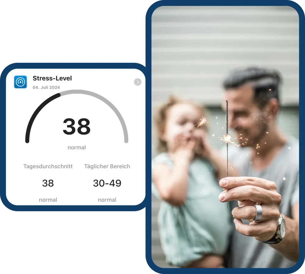 Kein Vibrationsalarm, kein Blinken, keine Ablenkungen von den wirklich wichtigen Dingen des Lebens. Unbemerkt am Finger getragen, bekommt dein Blaupunkt®-Ring trotzdem alles mit, ohne dich zu stören. Deine Daten schaust du dir in der Blaupunkt®-Ring App dann an, wenn es dir am besten passt. Echtzeiterfassung deines Stresslevels anhand deiner Puls-, HRV-, und Bewegungsdaten. Stress ist die starke Beanspruchung deines Organismus durch innere und äußere Reize. Deine Blaupunkt®-App macht Stress für dich sichtbar und unterteilt ihn in verschiedene Kategorien von relaxed über normal, mittel oder hoch. Entdecke, welche Faktoren zu erhöhtem Stress führen und lerne daraus, was dich wieder zu mehr Ruhe bringt.